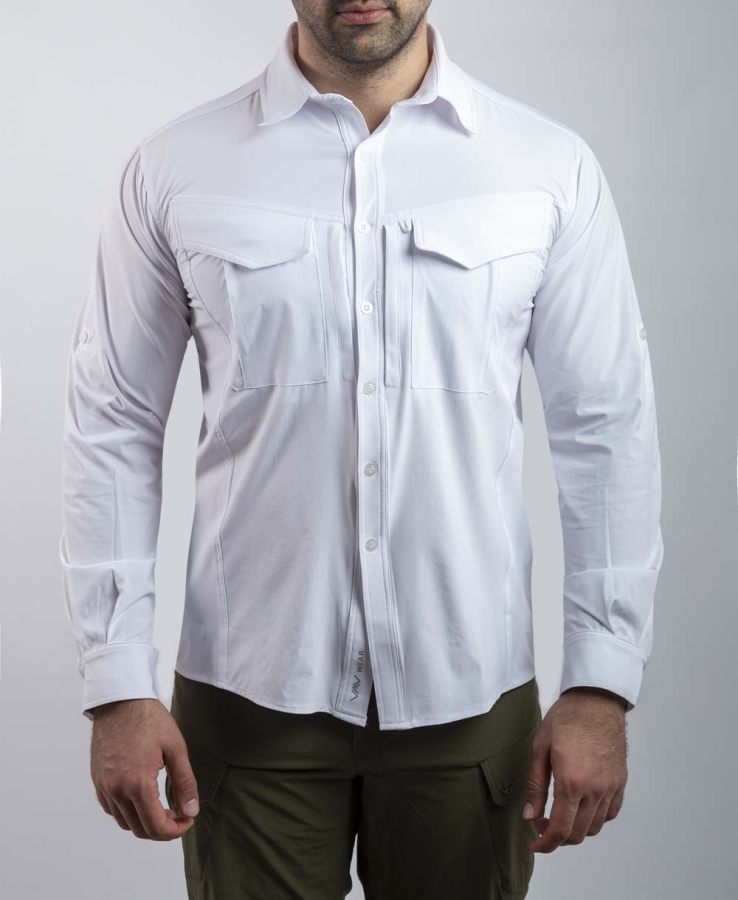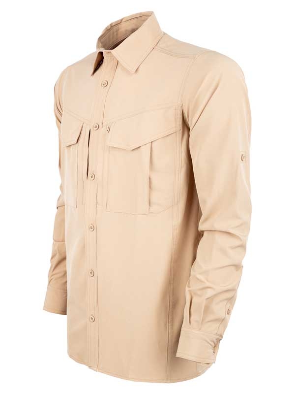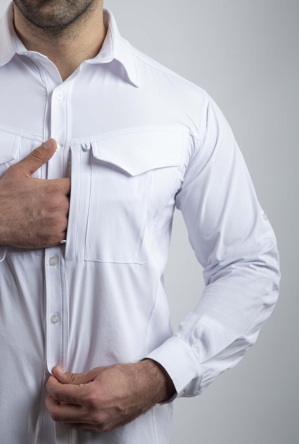 %90 Polyester ve %10 Elastan karışımı kumaşı ile dayanıklı ve esnek olan bu gömlek, Easy Iron teknolojisi sayesinde kolayca ütülenebilir. İki adet ön yüzünde YKK fermuarlı cep ve iki adet ön kapaklı cebe sahiptir, böylece eşyalarınızı güvenle taşıyabilirsiniz. Gözlük asma aparatı, katlanabilir mandallı kolları ve gizli düğmeli yakası ile pratik ve şık bir kullanım sunar. Sırtında ve koltuk altında bulunan havalandırma kanalları, ekstra konfor ve serinlik sağlar.